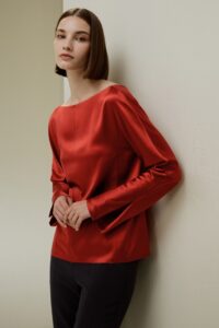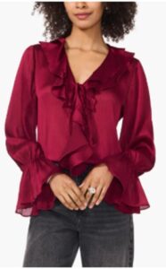 Here are a few examples of the softer blouses and tops that will make more tailored pieces festive. Remember that satin will hug and emphasize your curves, so make sure you have the right underwear or body shapers for whichever style you choose.