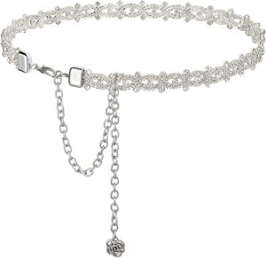 If you still want to show off your waistline, there are two ways to do this. Here’s the first. Just as with inexpensive bags, there are sequined and rhinestone belts on many lower-end fashion sites that you aren’t likely going to make a regular part of your wardrobe. But they can be the very thing that makes your holiday look. (Although I have an adorable friend in her 50s who wears a rhinestone belt with her jeans regularly.) This first one is the higher end.